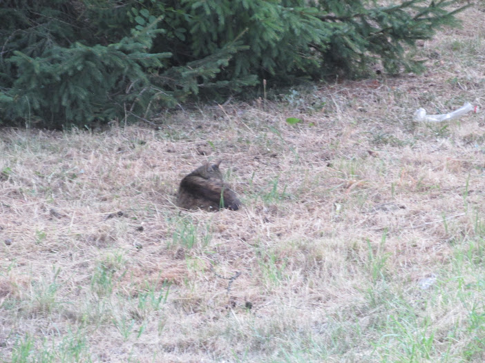 Jestem trochę wnerwiony. Startuje o 4 rano i co? Wciąż gorąco. Wdrapuję się na szczyt Ślęży a tam też gorąco. Zjeżdżam i na zjeździe też się ze mnie leje. Z tego wszystkiego pokażę tylko ptaka i nic więcej.Miałem jeszcze zaliczyć Radunię i coś tam jeszcze, ale rozmiękłem. I tak jestem z siebie dumny. Poobijany, pogryziony (mam piękną opuchliznę nad kostką po czymś, ale w bucie się mieszczę więc luz) i tak jeszcze jakoś daję radę.