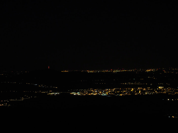 Dojazd na Przełęcz Walimską bez większych przygód. Na przełęczy druga latarka na kask i achoj przygodo. Pierwsze kilka minut w lesie to nerwowe rozglądanie się na boki, które szybko ustępuje miejsca ogromnej radości z rozdzierania ciemności i wyświecania saren. Każda przecinka atakuje widokiem rozświetlonych wiosek, miast, nadajników na szczytach. Gęstymi mgłami w dolinach i wszystkim co można sobie w nocy wymarzyć. Przy tych temperaturach jakie teraz w górach są ciężko zrobić dobre zdjęcie więc nawet sobie nie zawracałem tym głowy. To trzeba samemu zobaczyć.